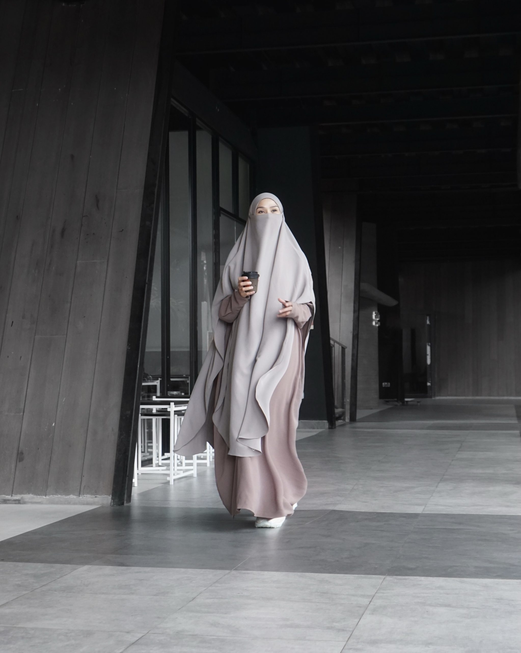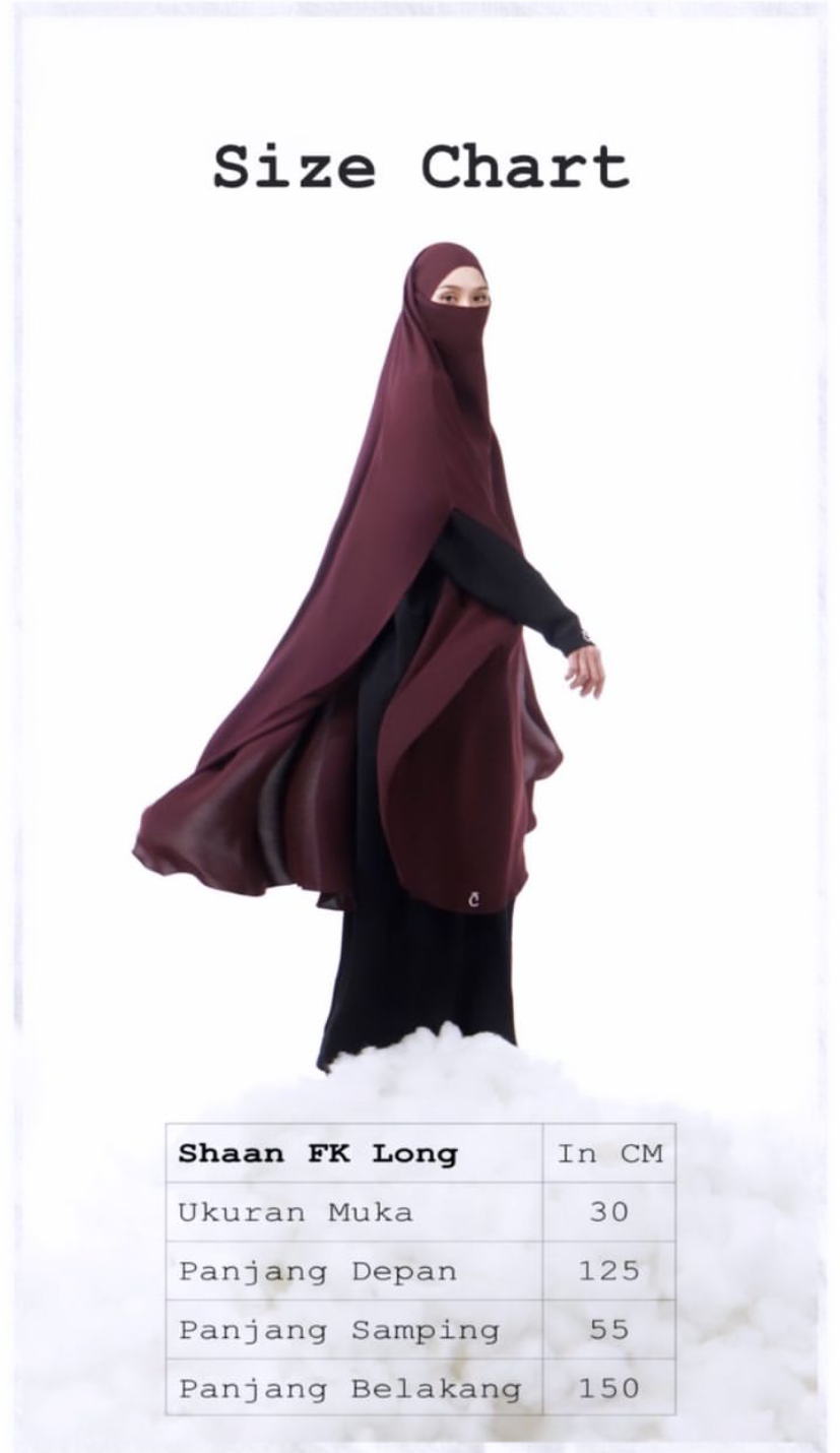 Instant French Khimar that can be adjusted for looseness. There are two rubbers at the top and bottom of the head with buttons at the end. This instant FK is very easy to use with its veil. With a choice of soft rubber that doesn’t hurt the ears. There is a distinctive Chadaree “C” logo in the middle of the bottom of the khimar. Using the best anti-uv mazen sultan fabric.